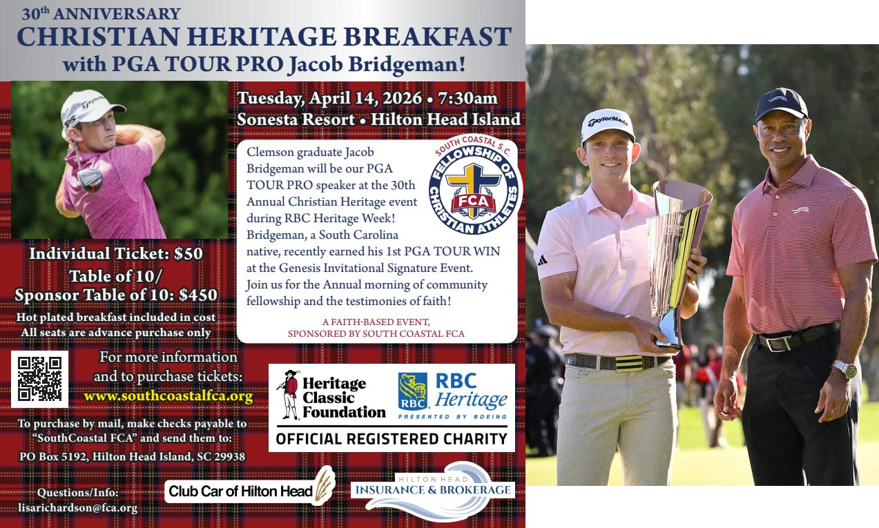 30th Anniversary Christian Heritage Breakfast/Sunrise Service + Add to Google Calendar + iCal / Outlook export 00 days 00 hours 00 minutes 00 seconds Date Apr 14 2026 Time 7:30 am - 8:45 am More Info Register Register Share this event Search for: Site Map 7 on 7 Football Camp All Abilities Camp Beaufort County Community Ministry Contact Us Donate Events Fields of Faith Golf Shamble Hampton County Heart & Soul Banquet RSVP Heart & Soul Dinner Heritage Breakfast & Sunrise Service Home Jasper County Leadership Board Media Meet Our Team Ministry Partners Students Volunteer Where We Serve
